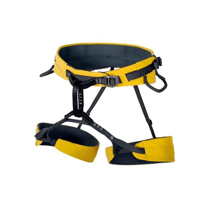 ARNES DE ESCALADA DE GRAN COMODIDAD Y LIGEREZA YA QUE SOLO PESA 335G EN LA TALLA M, Y 5 GRAMOS MAS POR TALLA, DE PERNERAS ELASTICAS PARA EL AJUSTE A MUSLOS Y CON PORTAMATERIALES RIGIDOS MUY COMODOS AL USO.